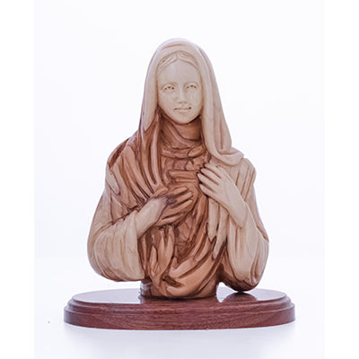 Hand Carved Olive Wood God Bless Our Home Wall Plaque with Madonna and Child